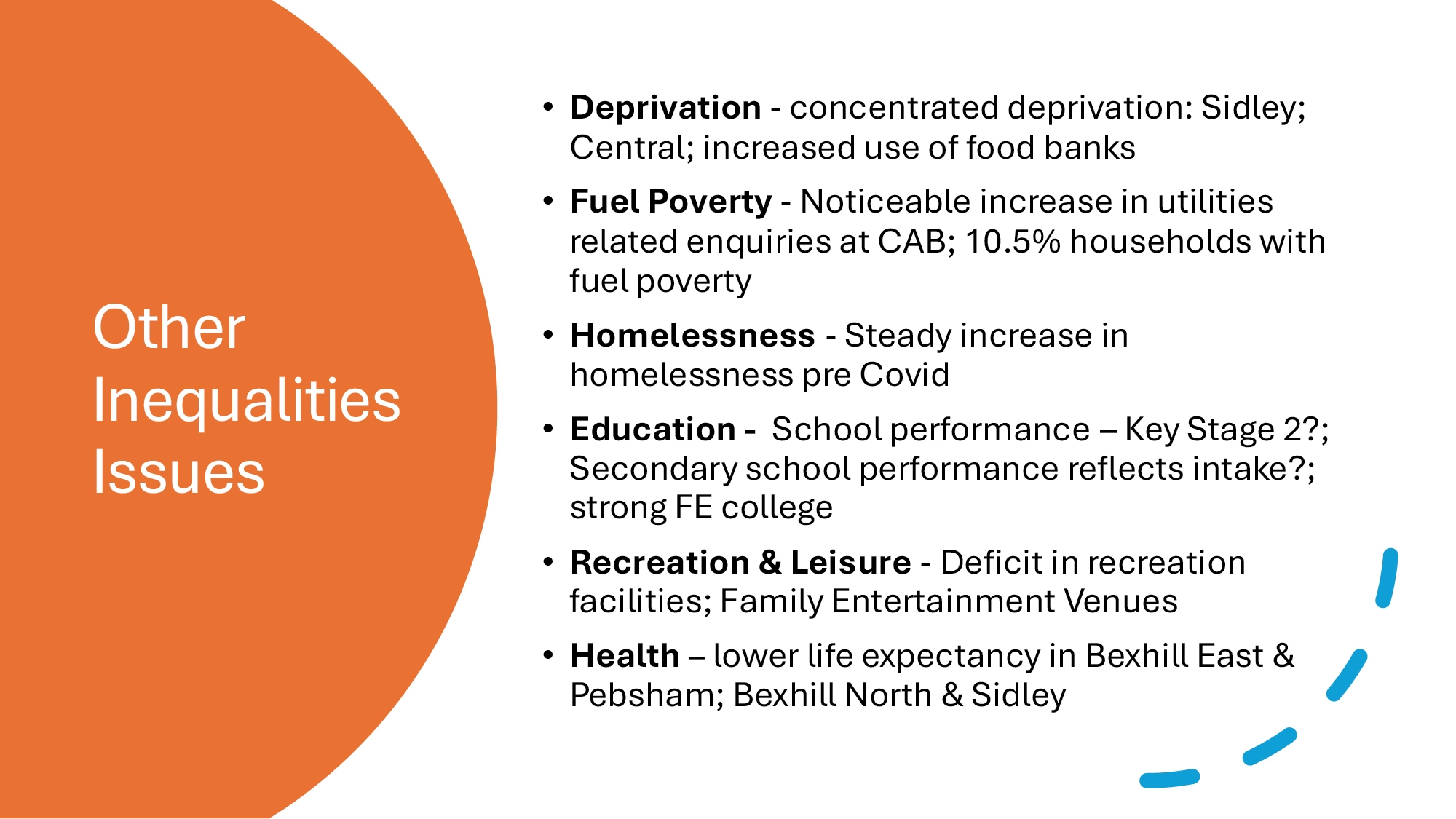 PW: Asked can we see direct comparisons in terms of deprivation in different areas. Bruce confirmed that this will be picked up in the wider report.