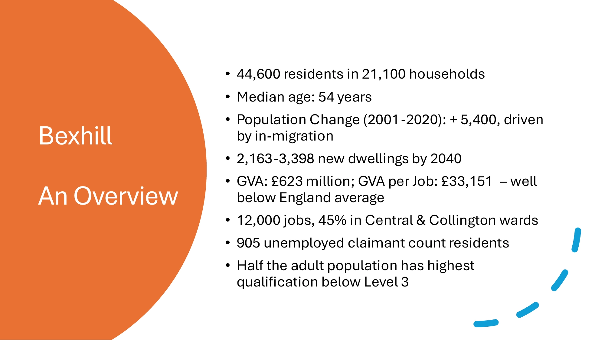 The Chair welcomed Scott Marshall and Bruce Nairn who gave a slide presentation on their data work so far. The presentation was designed to inform Town Board discussions later in the agenda regarding direction of travel for decision making on vision and the first 3 year investment plan. The summary slides are attached as Appendix A.