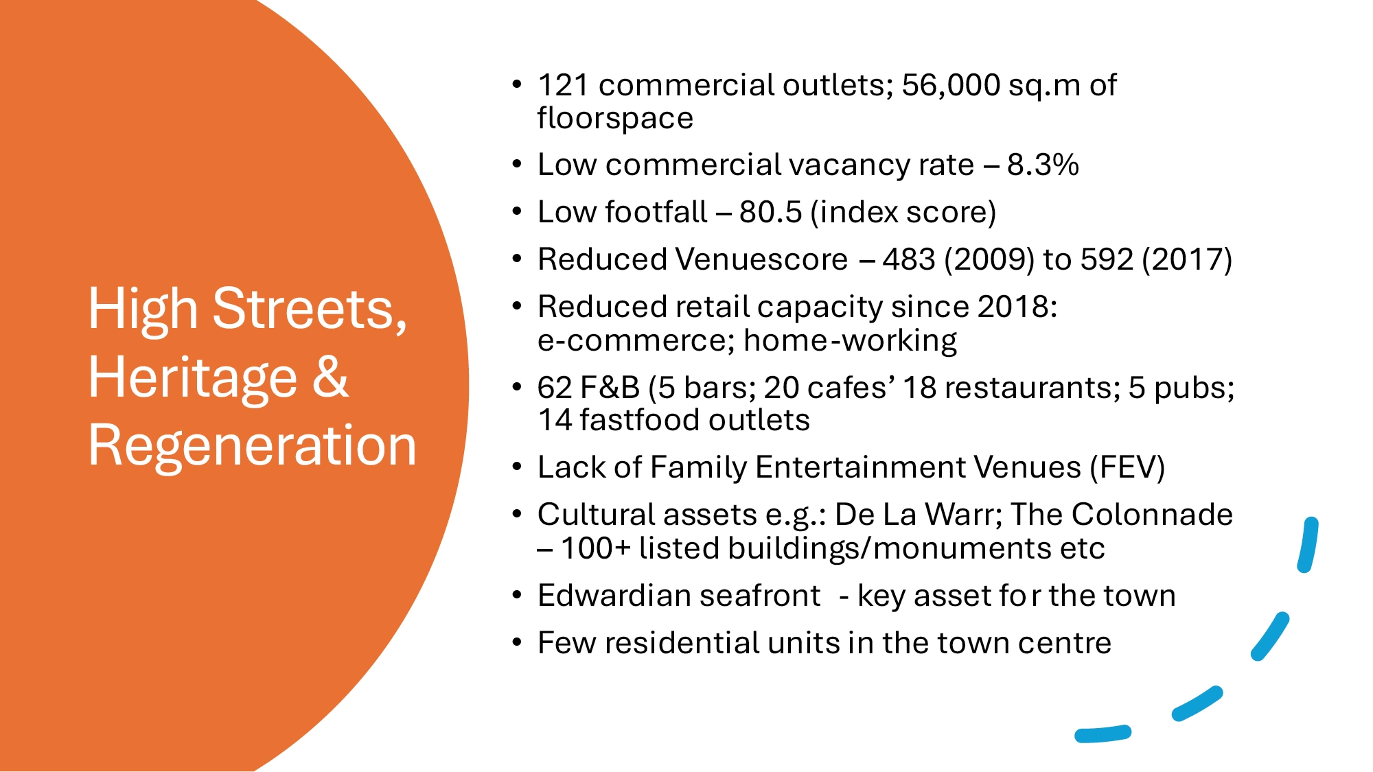 HM: the data feeding the conclusion that there are ‘few residential units’ in the town centre is wrong and needs to be addressed. The town centre is substantially residential, and this is one of its strengths, although the area is characterised by low income overall. Bruce Nairn agreed to revisit the dataset in this regard.